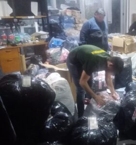 El Magistrado interviniente ordenó a los efectivos de Gendarmería Nacional registrar ayer cuatro departamentos del edificio, que frecuentaba el investigado. Allí, el personal de la Fuerza encontró una gran cantidad de mercadería textil, etiquetas apócrifas, imitaciones de perfumes, rodados, divisas, restos de estupefacientes y entre otros elementos de almacenamiento.