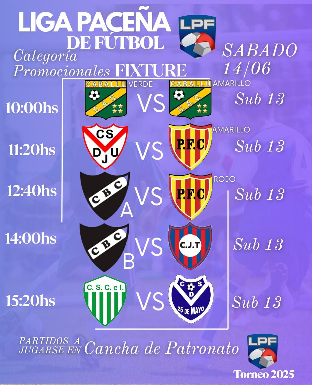 - 15:20 hs – C.S.C.E.I vs. C.S.D 25 de Mayo (Sub 13)