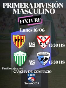 - 16:00 hs – Padel Club Malvinas Argentinas vs. CSD 25 de Mayo