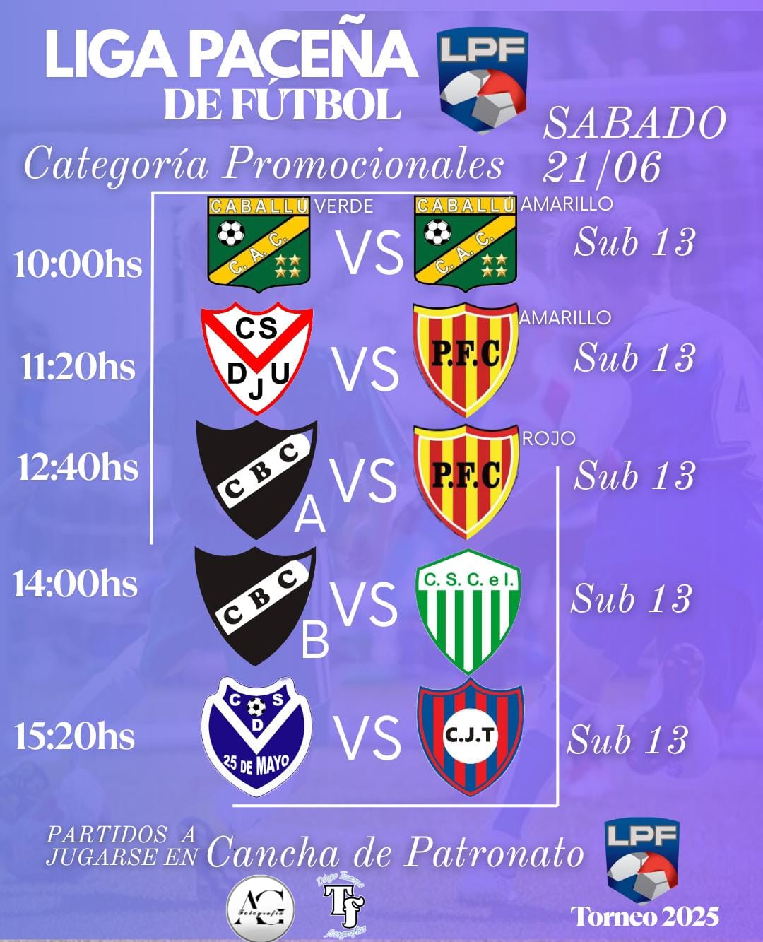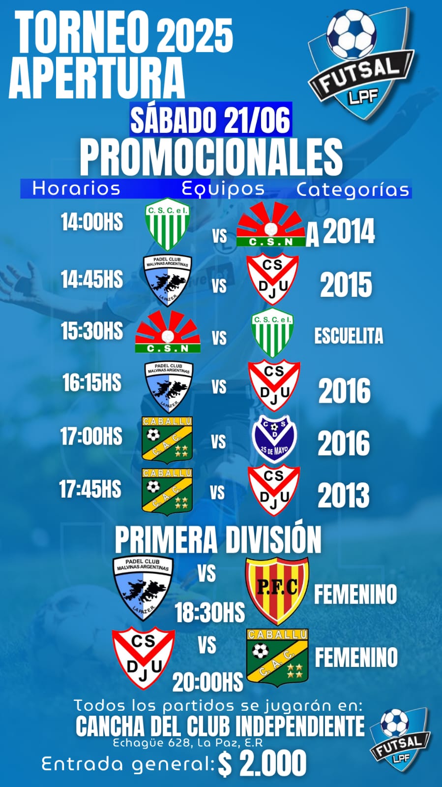 - Sábado 21 de junio: Encuentros promocionales y primera división en la Cancha del Club Independiente