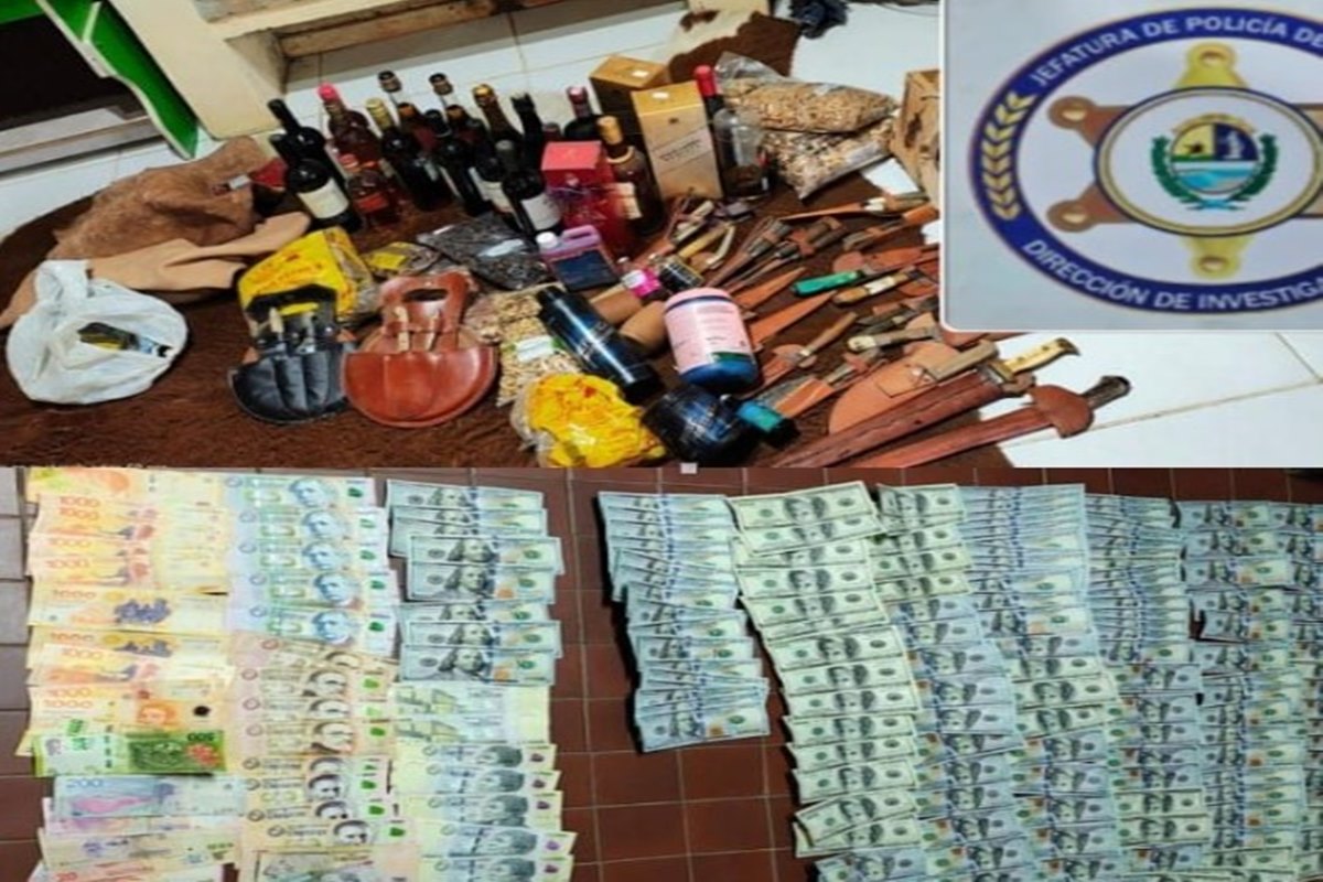 Se realizó un allanamiento, cuya orden fue solicitada oportunamente por Fiscalía actuante y expedido por el Juzgado en lo Penal y Adolescentes, donde se le incauto 2.000 dólares, 30.000 mil pesos uruguayos, 2 teléfonos celulares, 3 juegos de cuchillos, una vaina y tenedor, tres vainas, 17 cuchillos, 5 frascos de miel, 4 cajas de farantel equinos, 2 cajas de tranquilizante ACEDAN , 11 mates de madera , 3 tablas grandes, 4 copetineras , 3 porta tablas medianas, 14 tablas medianas, 3 porta tablas chicos, 17 tablas chicas, martillo de madera , 3 porta juegos de cubiertos y tablas, vaso de metal y 6 candelabros.