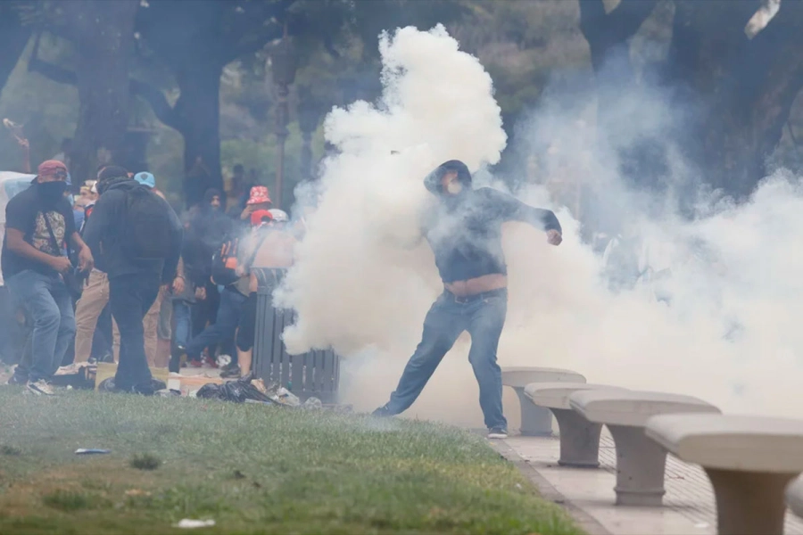 Fuerzas de seguridad reprimieron con gases lacrimógenos, balas de goma, palos y empujones a jubilados e hinchas que protestaban este miércoles en las inmediaciones del Congreso contra el ajuste del gobierno de Javier Milei.